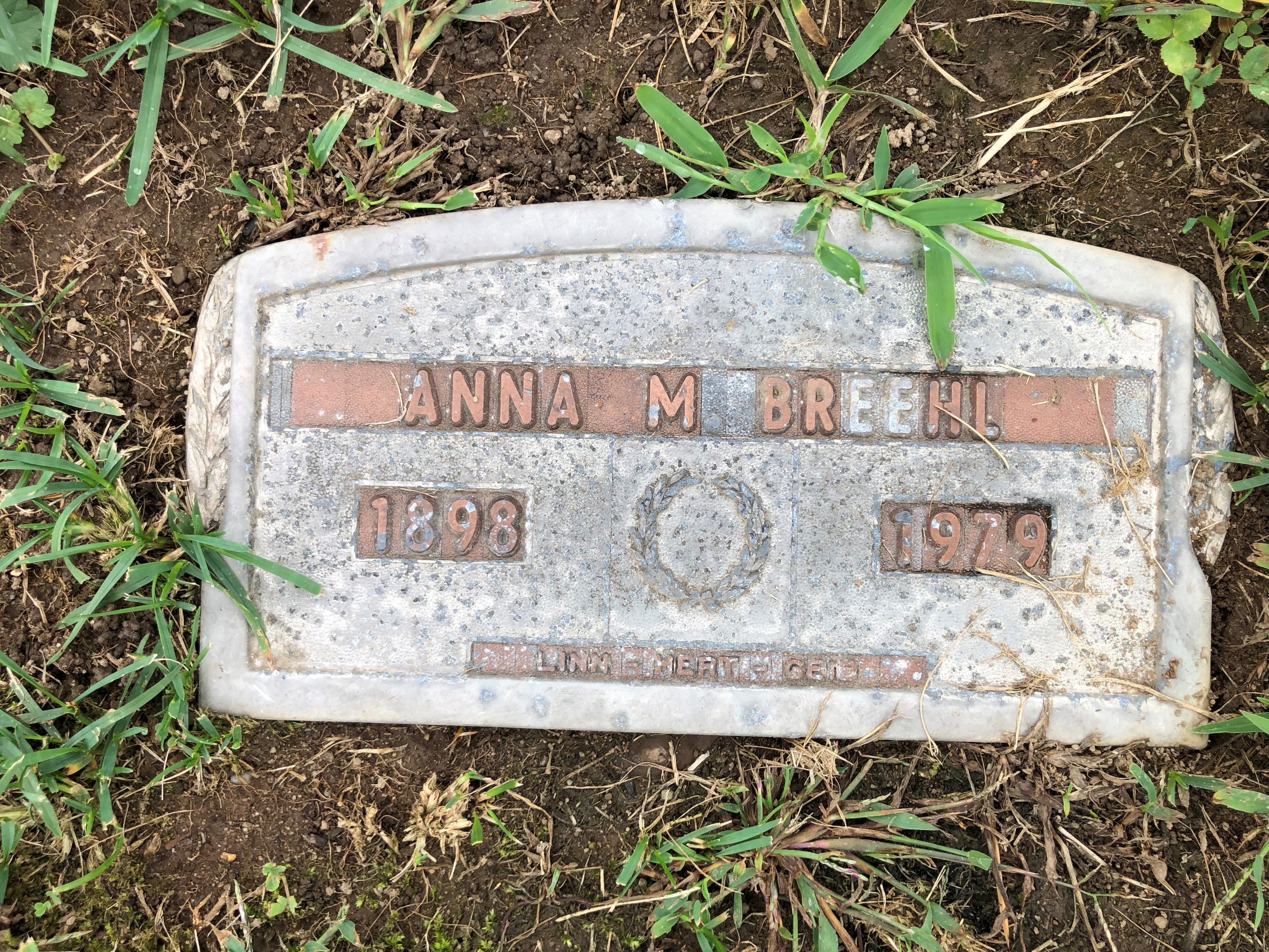 BREEHL MONUMENT, BREEHL, ANNA M