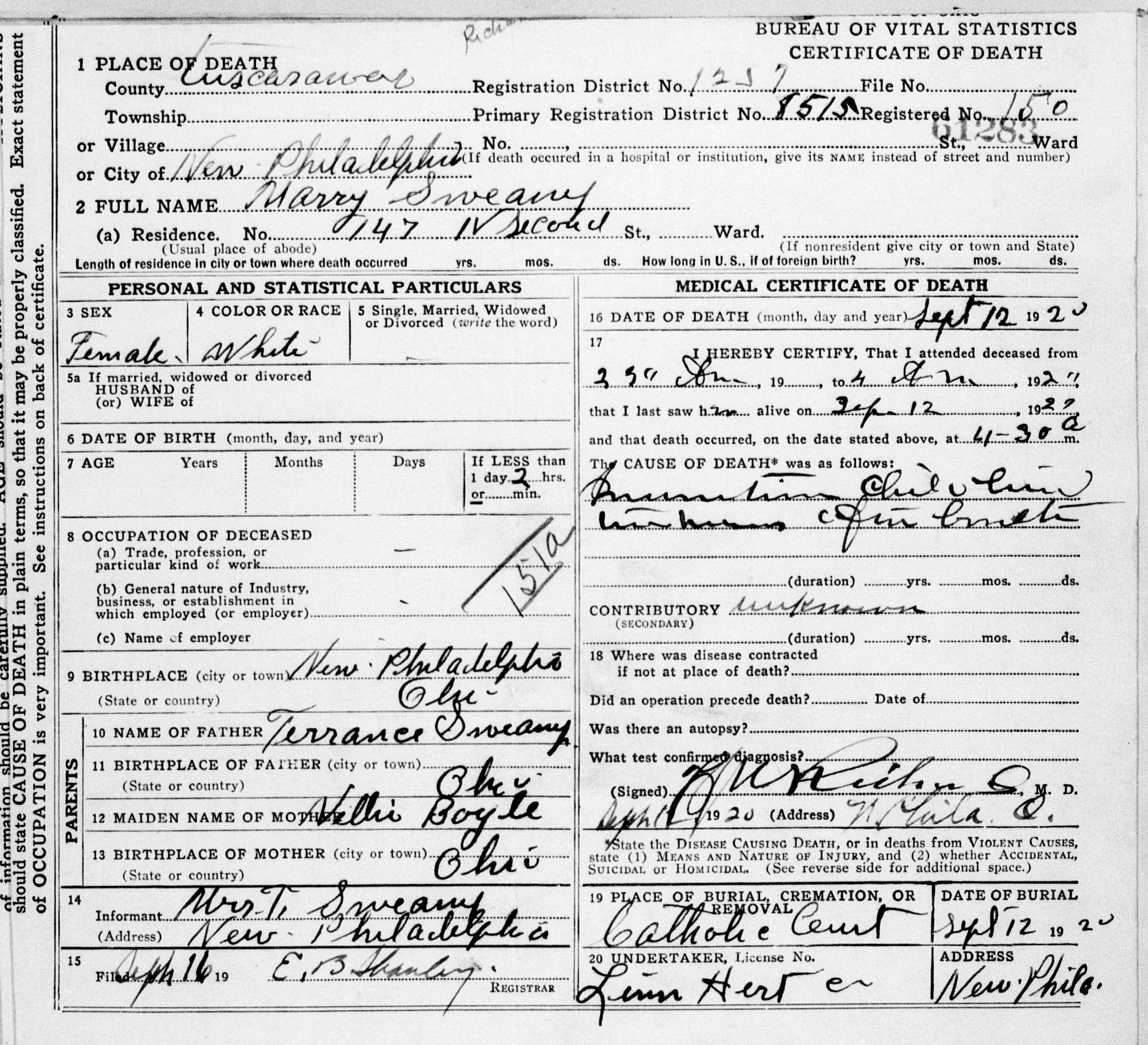 Burials On The Web - Sacred Heart-Calvary Cemetery