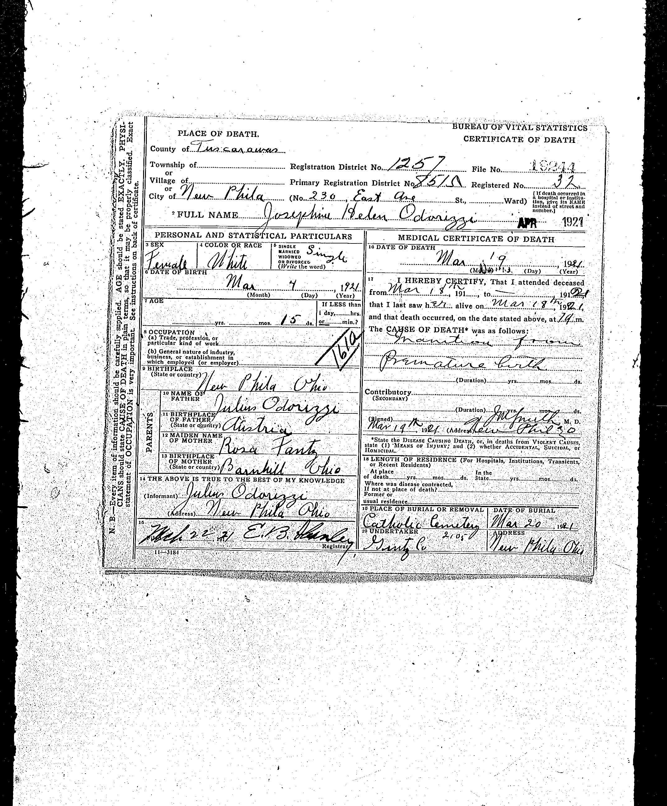 ODORIZZI, ODORIZZI, JOSEPHINE HELEN